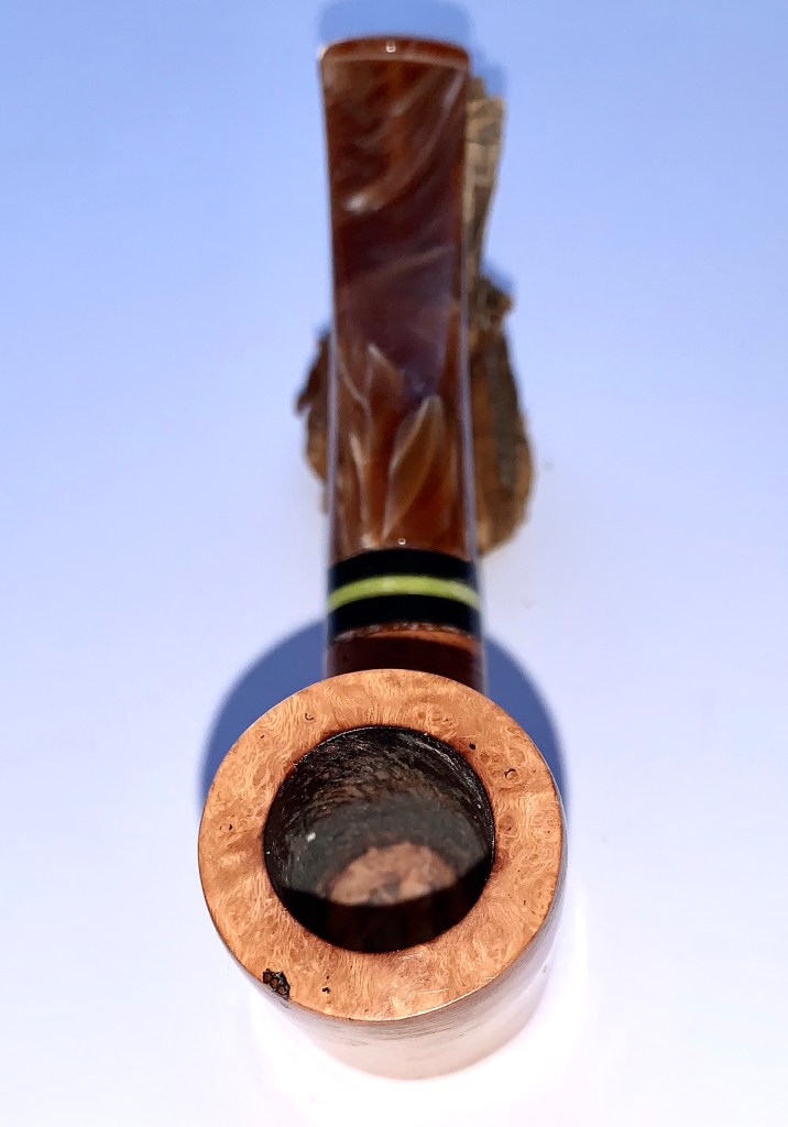 La pipa “Poker Venata” – è una bella radica italiana che monta un bocchino pieno in metacrilato. È una pipa lasciata al naturale (come da foto) abbellita con anelli in metacrilato neri e giallo; trattata con olio danese e cera di carnauba. Le dimensioni sono le seguenti; Dimensioni: Diametro fornello 18 mm, diametro esterno fornello: 28 mm, lunghezza: 120 mm, altezza: 42,90 mm, profondità fornello: 36 mm, peso 32 gr.
