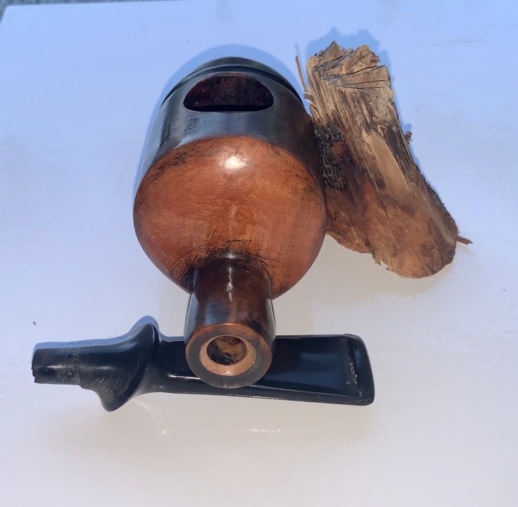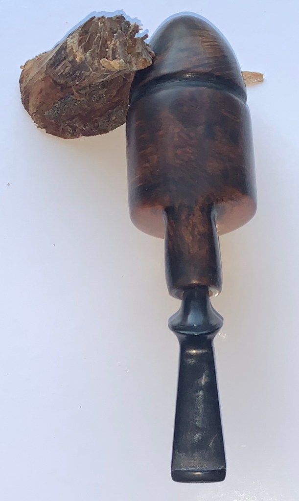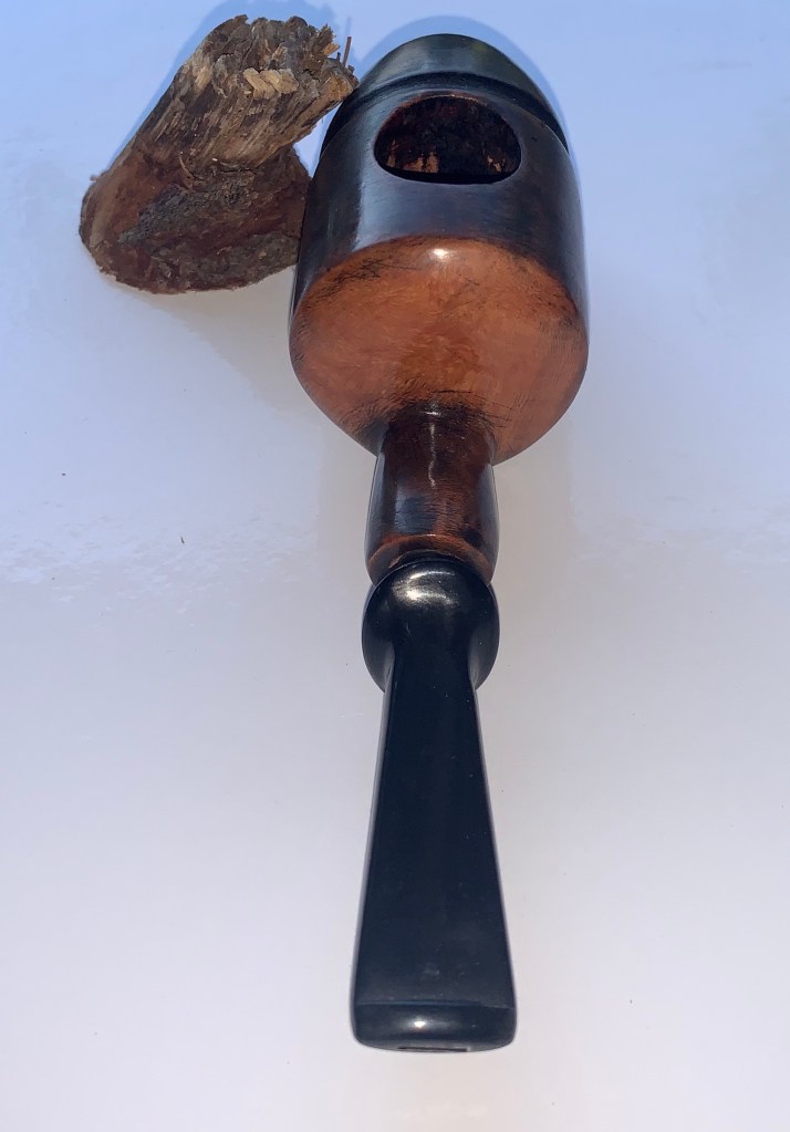 La pipa Original V2 è, come dice il nome una pipa originale nella forma. Di dimensioni significative, è molto indicata per una fumata tranquilla magari in veranda o su una comoda poltrona. Il materiale utilizzato è una bella radica italiana e il bocchino è un flock in ebanite. La pipa original V 2 è stata già fumata tre volte ma è anche stata successivamente sanificata. La fumata che garantisce è ottima.