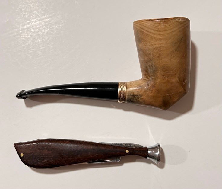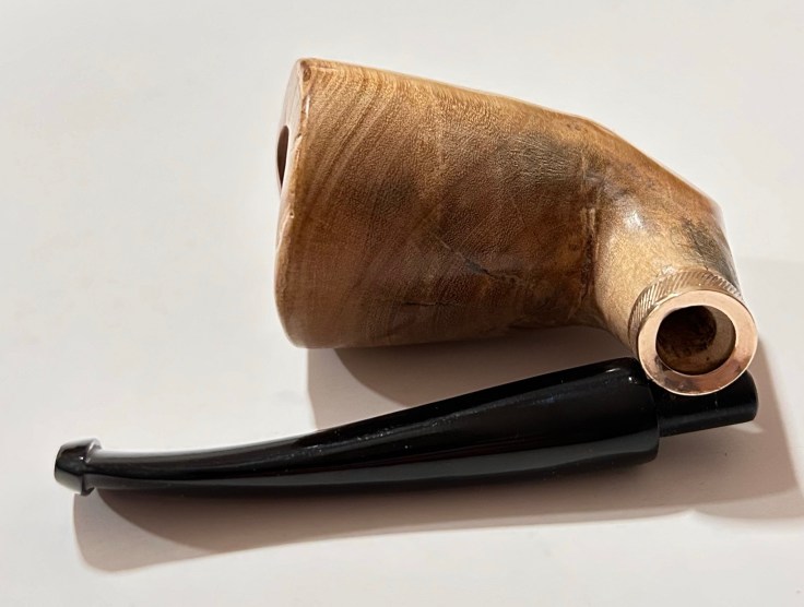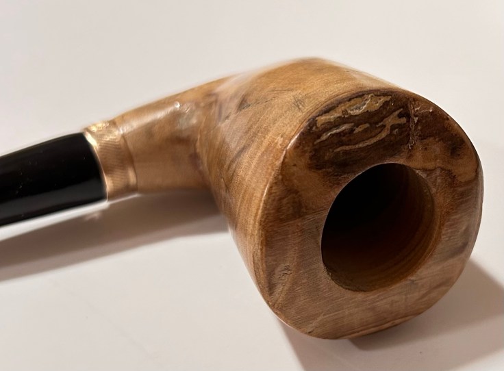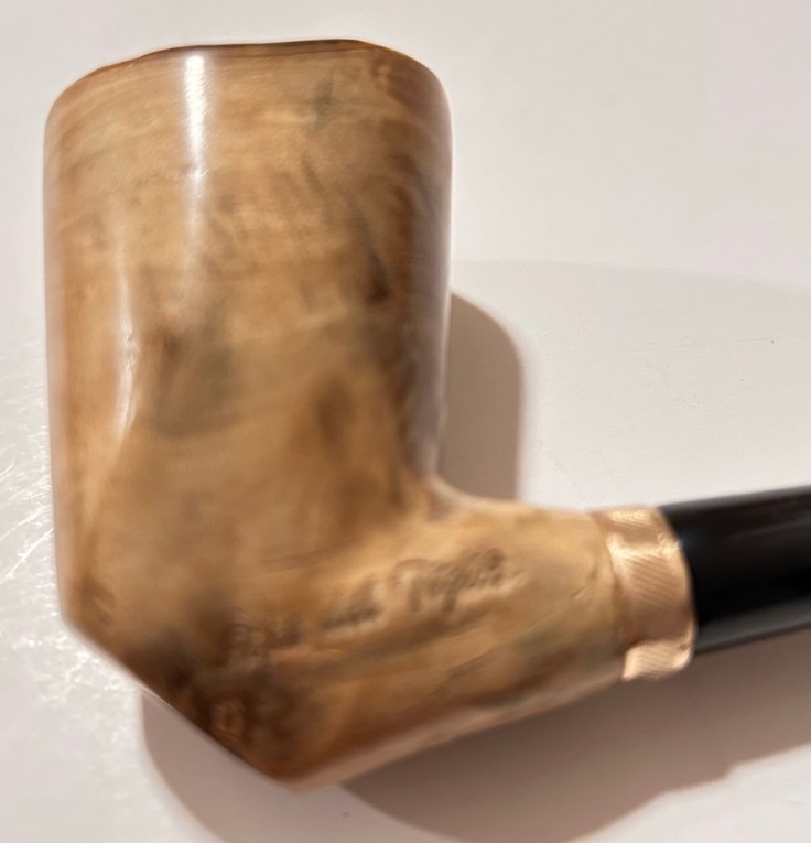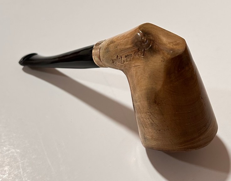 La pipa è nuova, costruita in modo artigianale e curata dal punto di vista estetico; il fornello ha un diametro di 20 mm e una profondità di 50; il diametro esterno è di 39 mm, l’altezza dell’arco di 61 mm e la lunghezza della pipa, 122 mm.