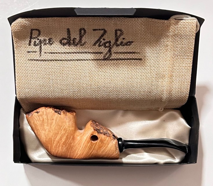 La pipa, non rodata e senza filtro, verrà confezionare con il sacchetto del produttore contenuto n una elegante scatola per il trasporto.