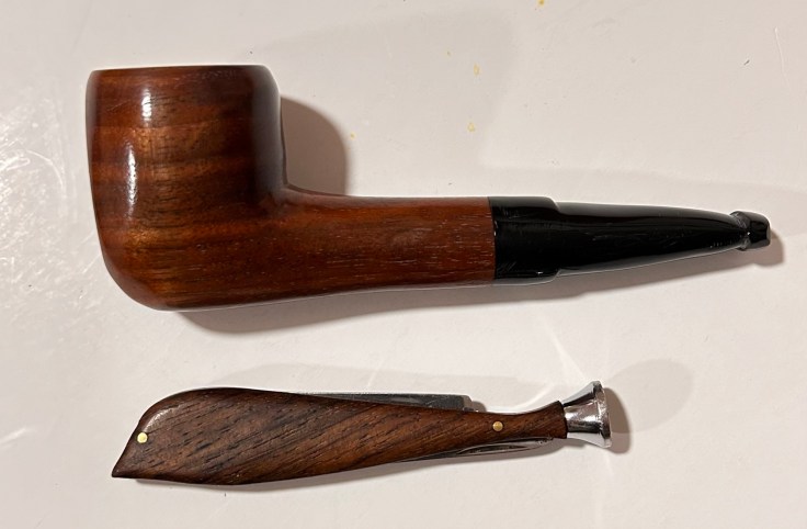Lo shape è quello di una Freehand con cannello robusto; il materiale della pipa è noce con bocchino in metacrilato.