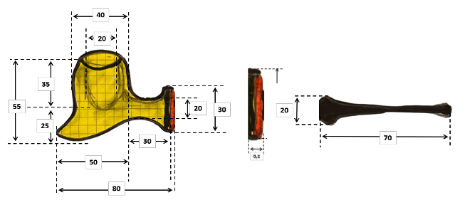 Il fornello ha un diametro di 20 mm e una profondità di 35; il diametro esterno è di 35 mm, l’altezza dell’arco di 54 mm e la lunghezza della pipa, 160mm.