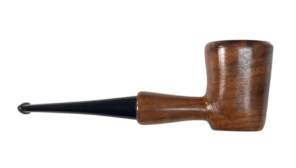 Caratteristiche: Pipa dallo shape free, non rodata e senza filtro, in legno di noce nazionale e con bocchino un ebanite.