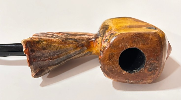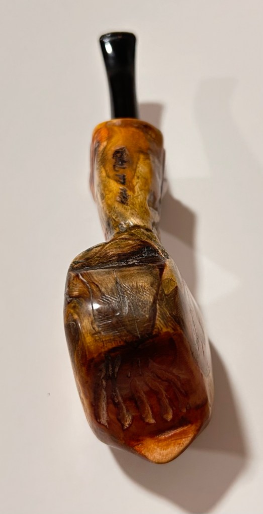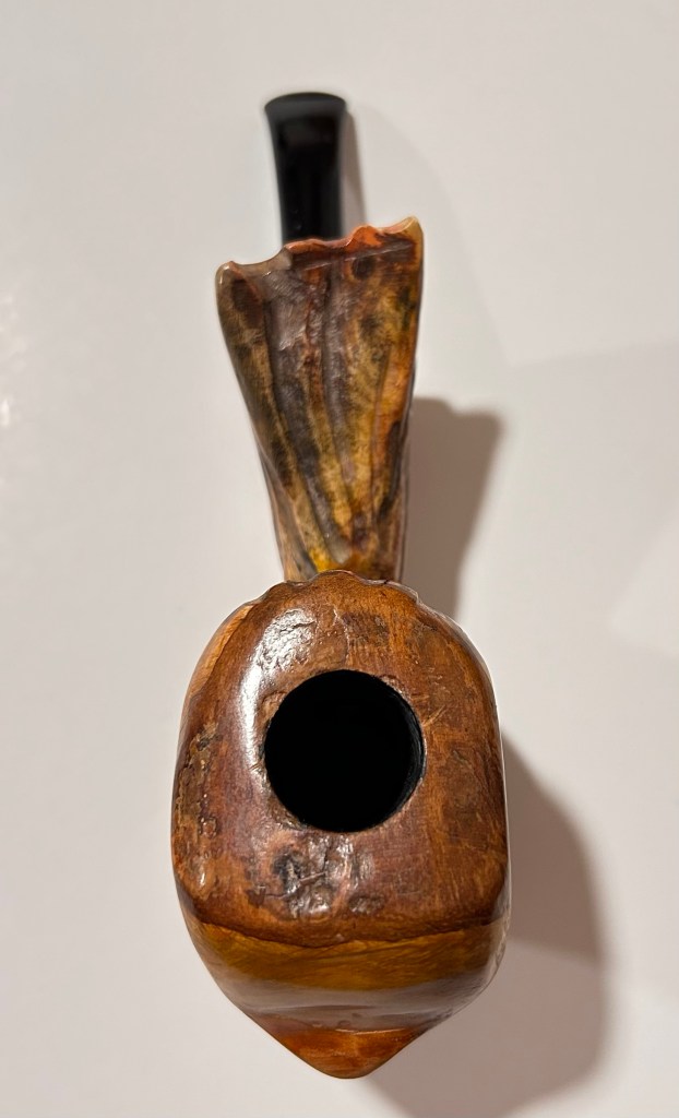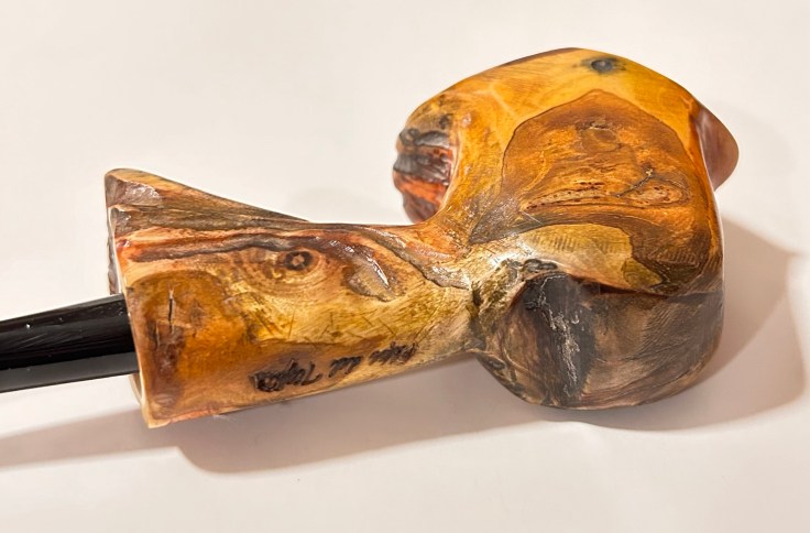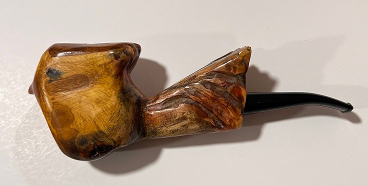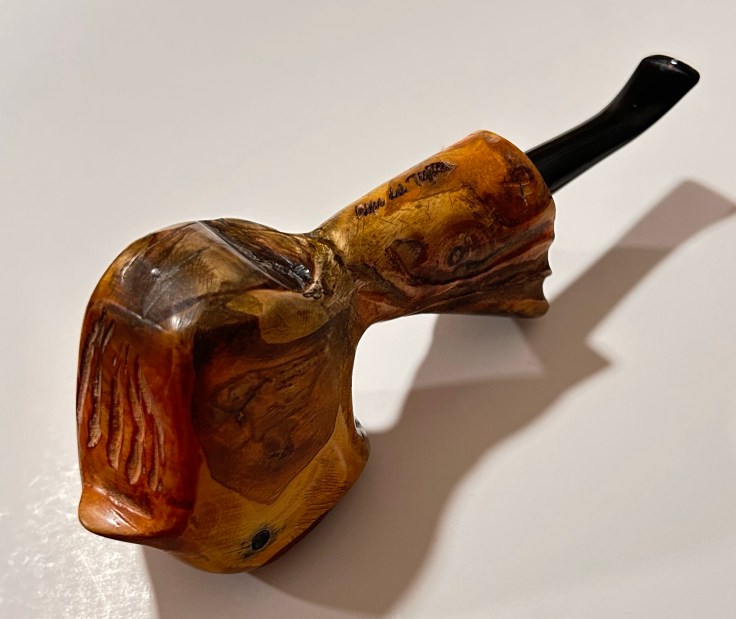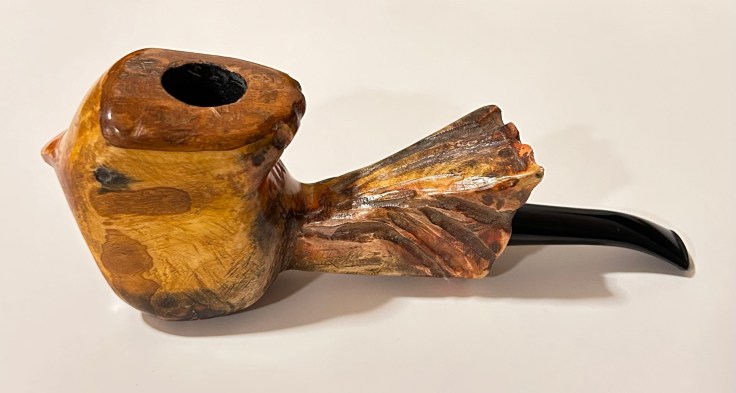 Pipa artigianale; articoli da collezione per fumatori. Pipe del Tiglio: 23-024 Ballerina 02 di costruzione artigianale. La pipa è nuova, costruita in modo artigianale e curata dal punto di vista estetico; lo shape freehand richiama le forme di un uccello tropicale dai colori vivaci. Il fornello ha un diametro di 18 mm e una profondità di 40; il diametro esterno è di 40 mm, l’altezza dell’arco di 60 mm e la lunghezza della pipa, 155 mm. Peso: 100 gr. Caratteristiche: ballerina stand up; il materiale della pipa è ulivo con bocchino in ebanite. È una pipa rodata e senza filtro che verrà confezionare con il sacchetto del produttore.