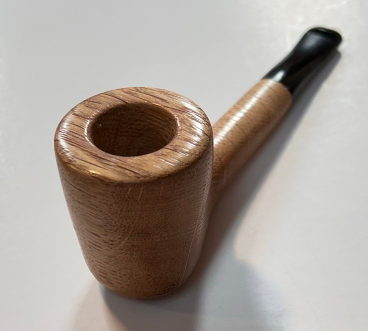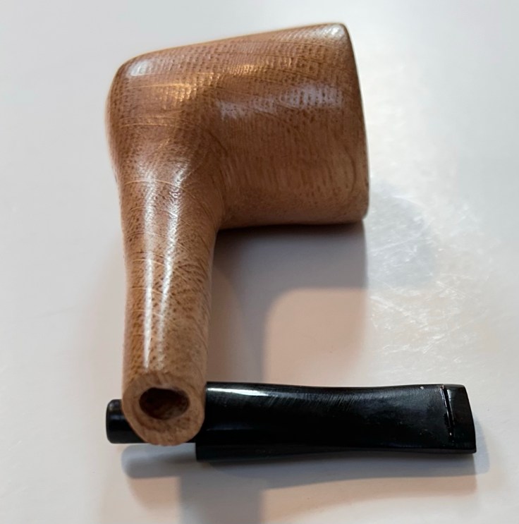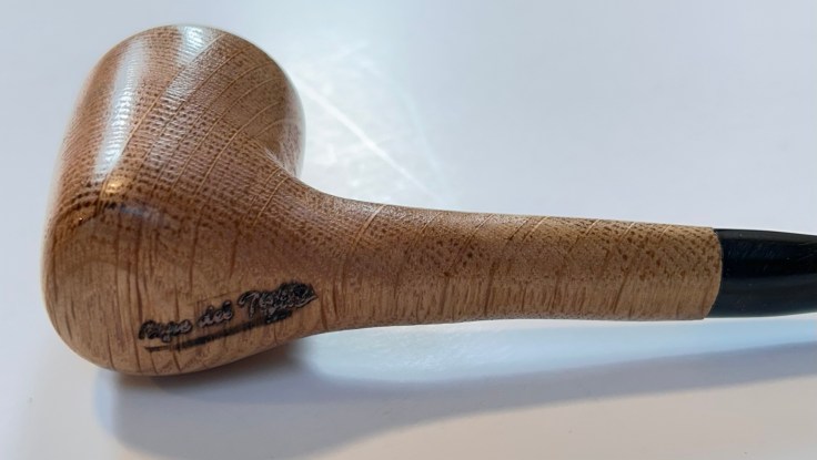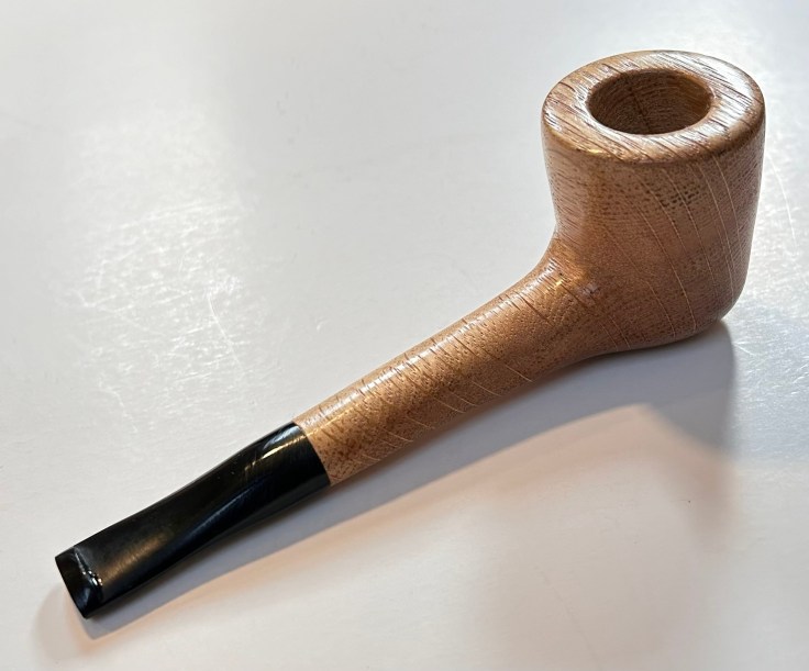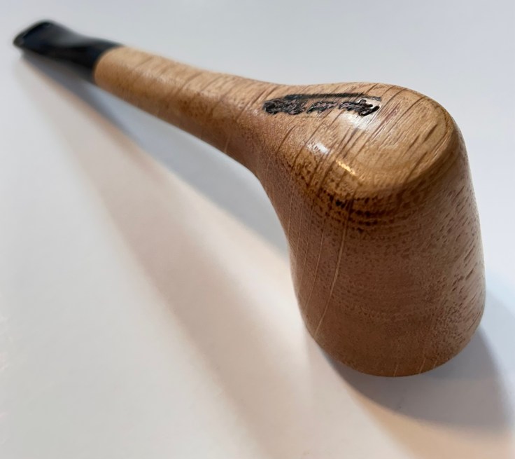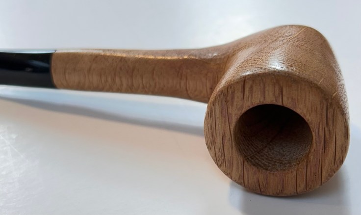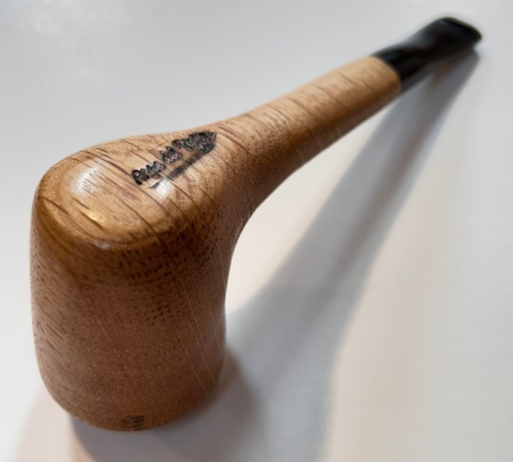 Lo shape è quello di una canadese con cannello lungo e ovale; il materiale della pipa è rovere (quercia) con bocchino in ebanite.