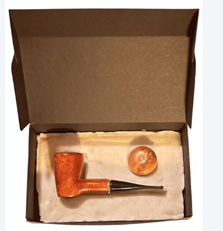 È una pipa non rodata e senza filtro che verrà confezionare con il sacchetto del produttore e una elegante scatola per il trasporto.