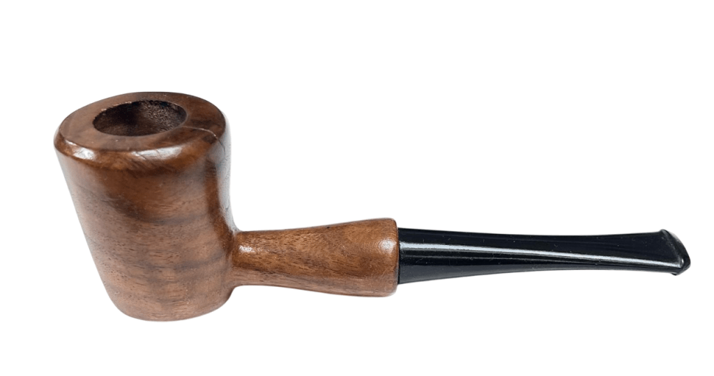 Caratteristiche: Pipa dallo shape free, non rodata e senza filtro, in legno di noce nazionale e con bocchino un ebanite.